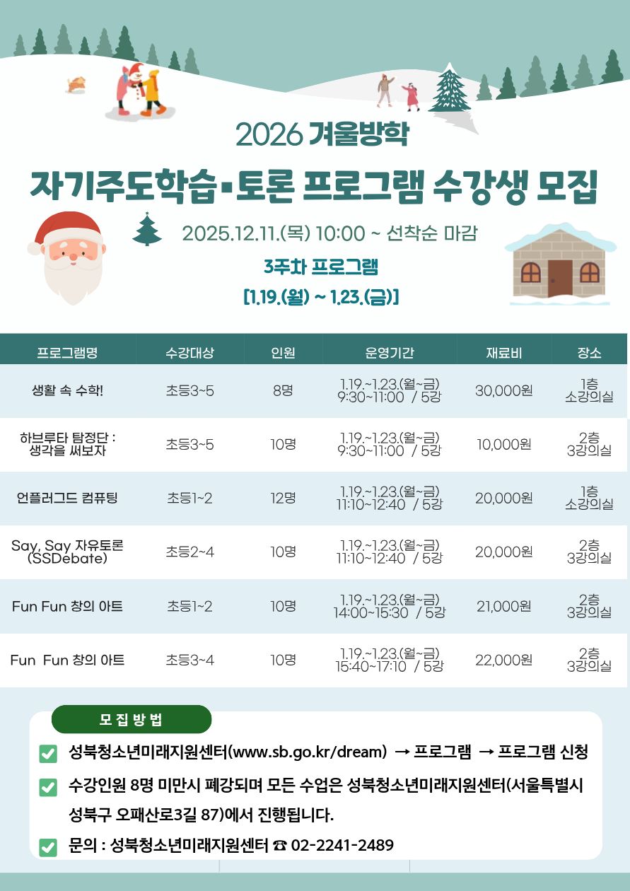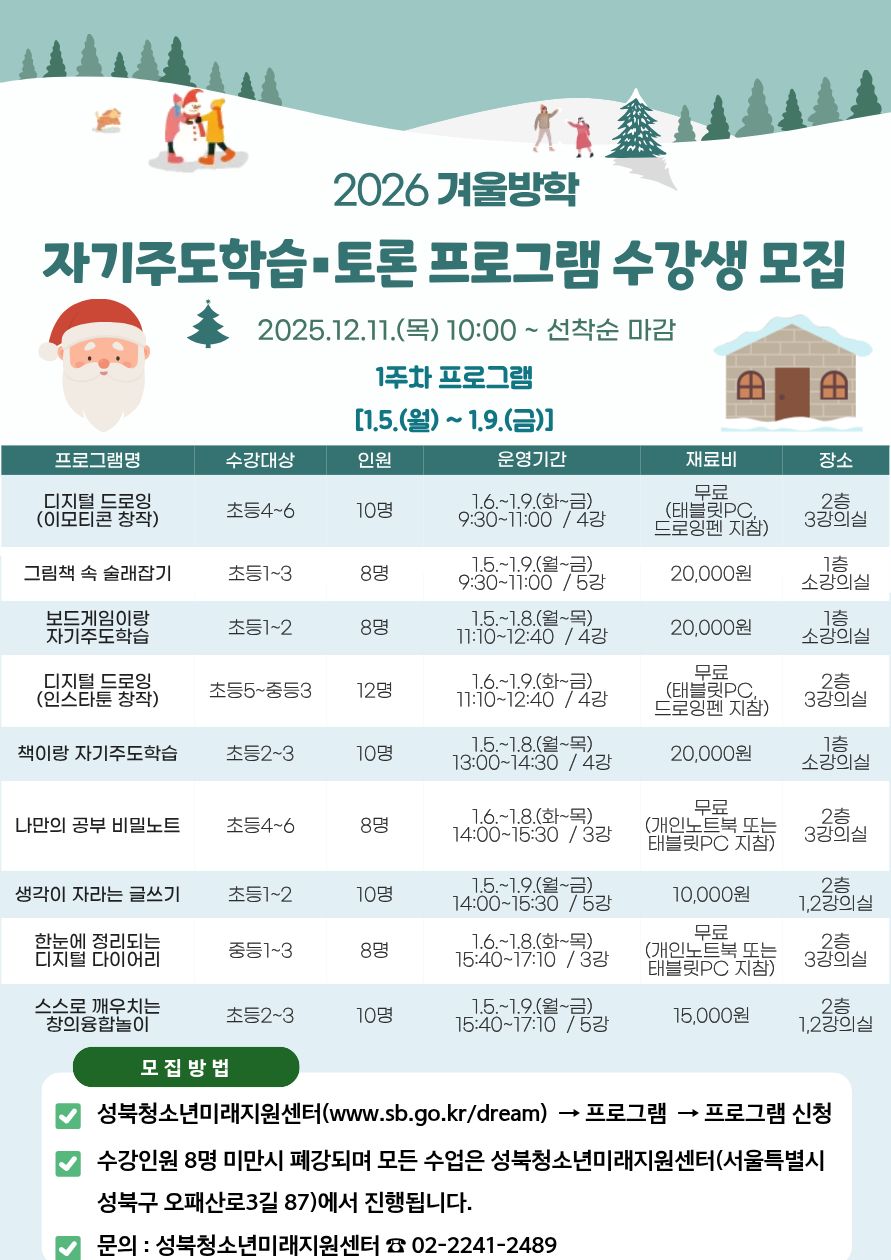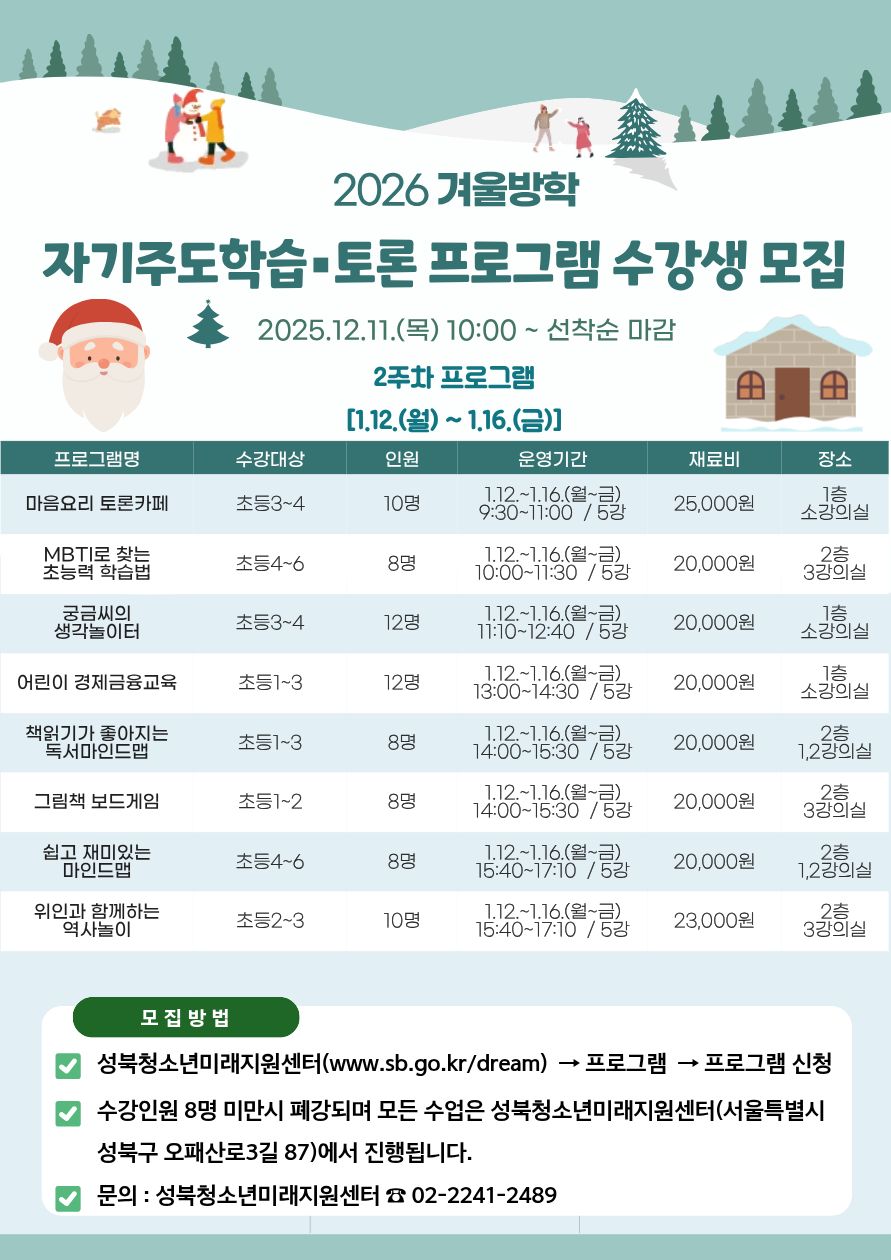 2026년 겨울방학 자기주도학습·토론 프로그램 강의계획서