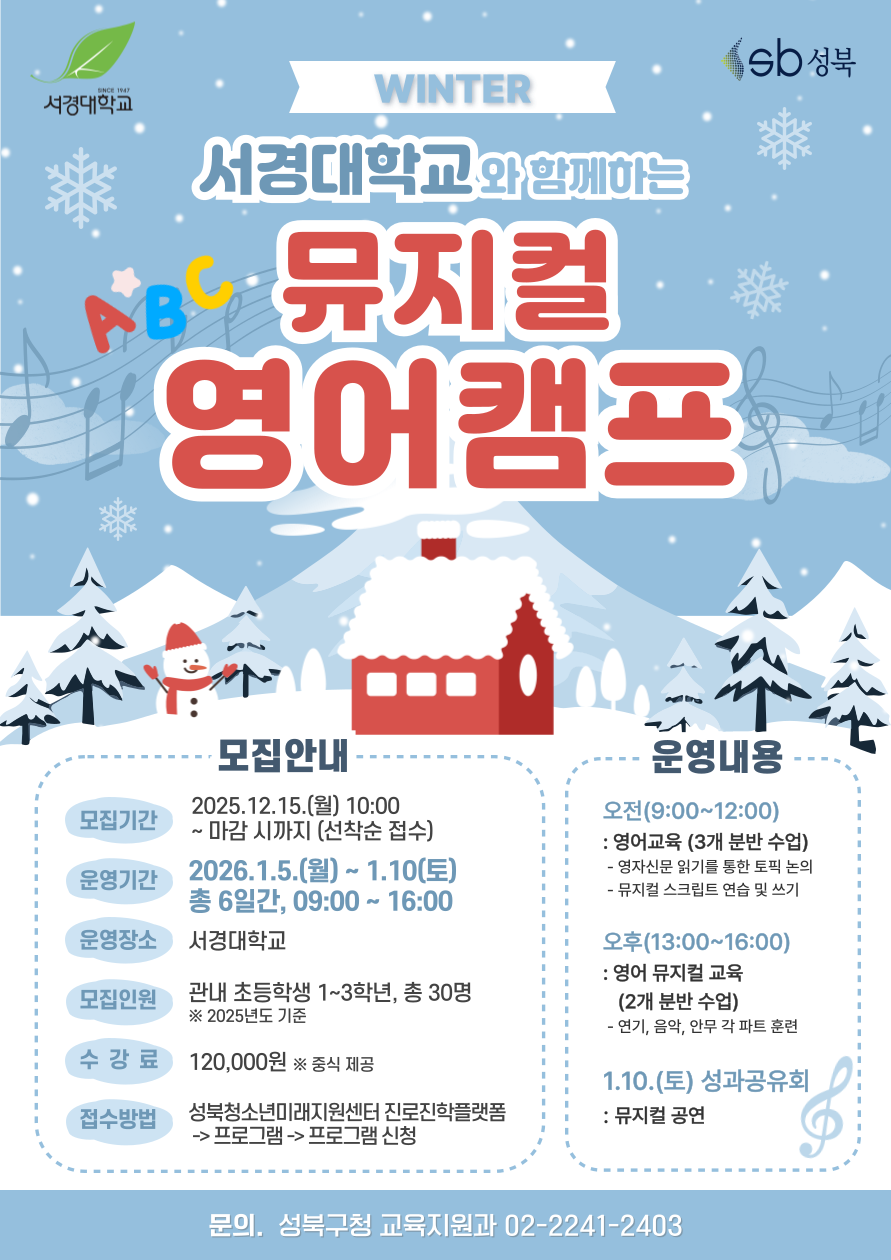 ※ 모집 공고일(25.12.3.) 현재, 성북구에 주소가 등재되어 있거나 성북구 소재 초등학교에 다니는 학생만 신청 가능