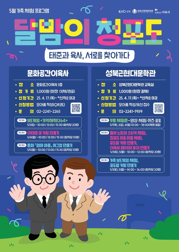 [시민일보 = 문민호 기자] 성북구(구청장 이승로)가 가정의 달을 맞아 성북근현대문학관과 문화공간이육사에서 체험형 문학 교육 프로그램 '달밤의 청포도 : 태준과 육사, 서로를 찾아가다'를 오는 5월1일부터 5일까지 운영한다.