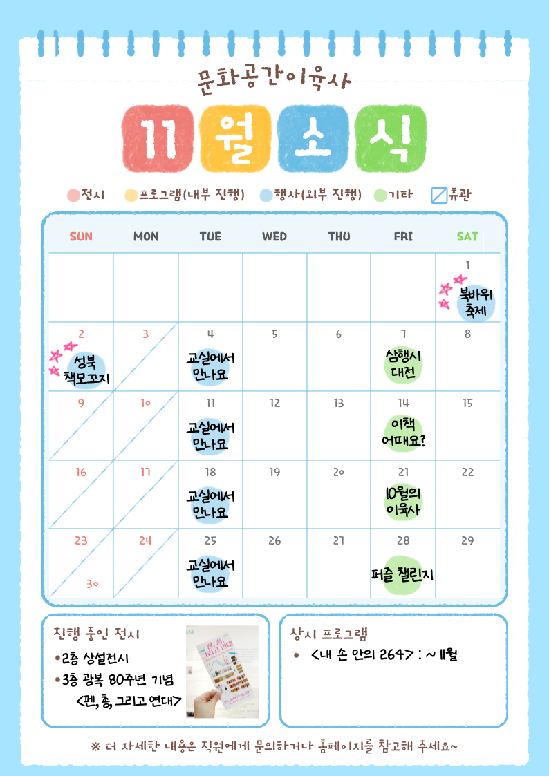 11월, 문화공간 이육사는 다양한 활동이 준비되어있습니다.