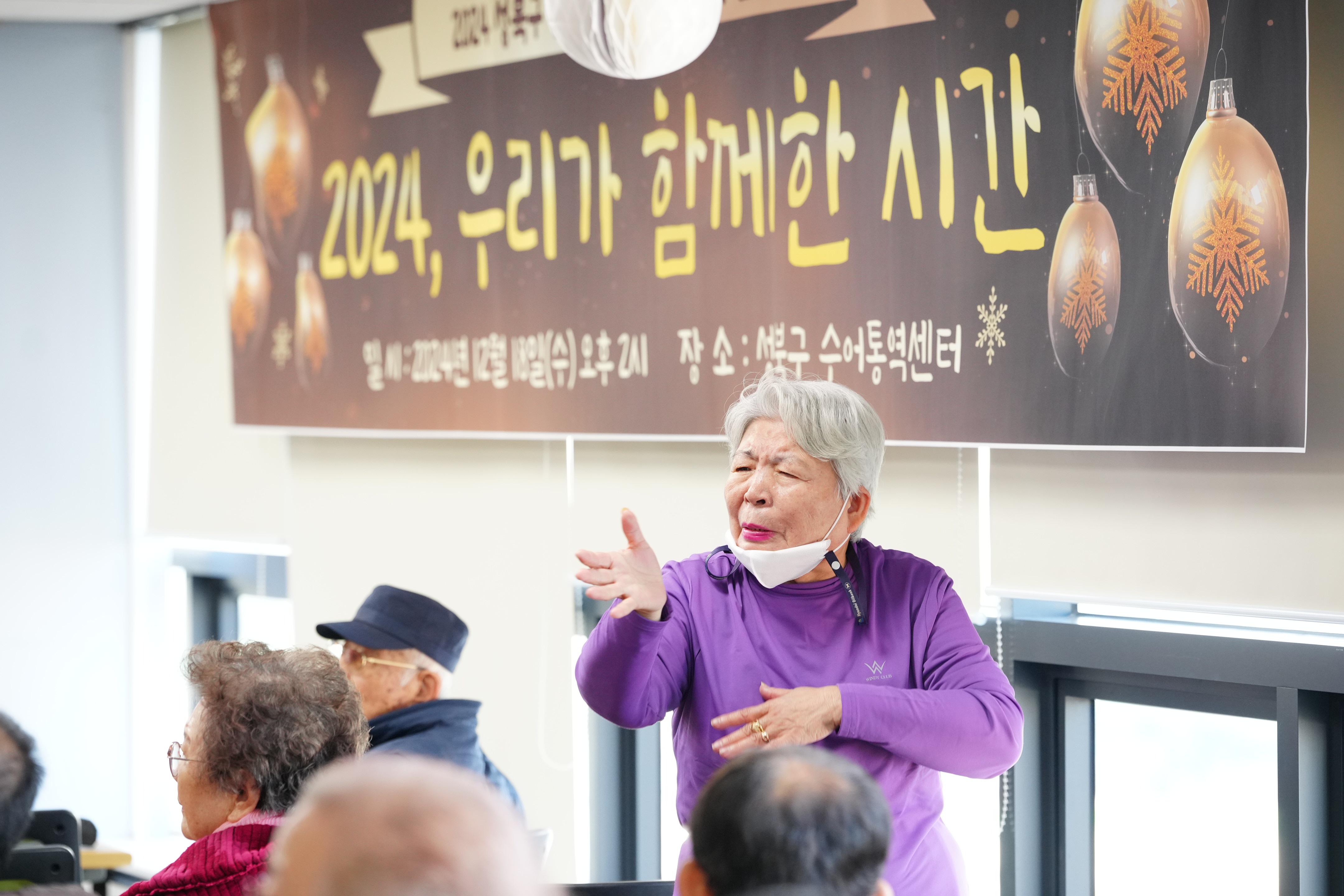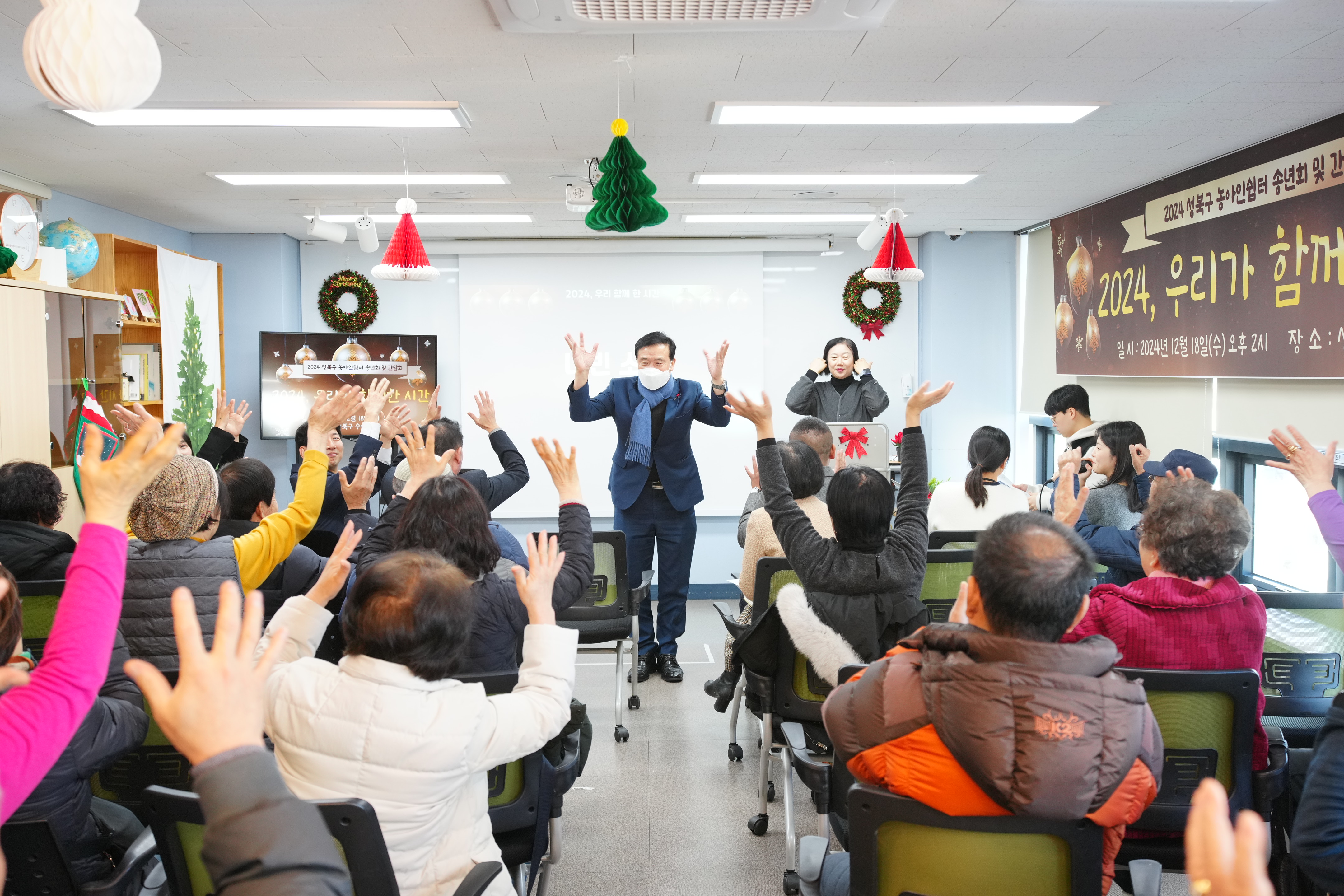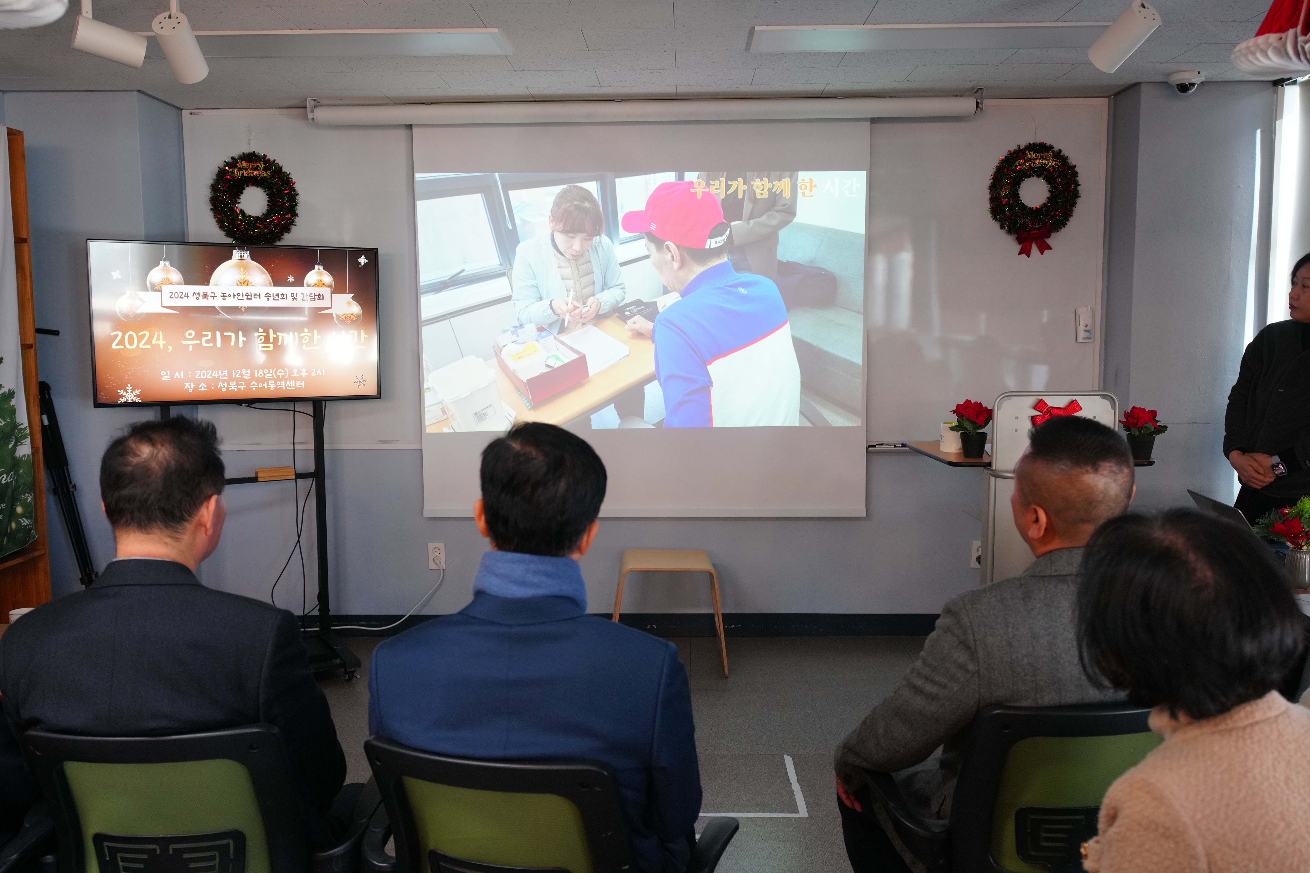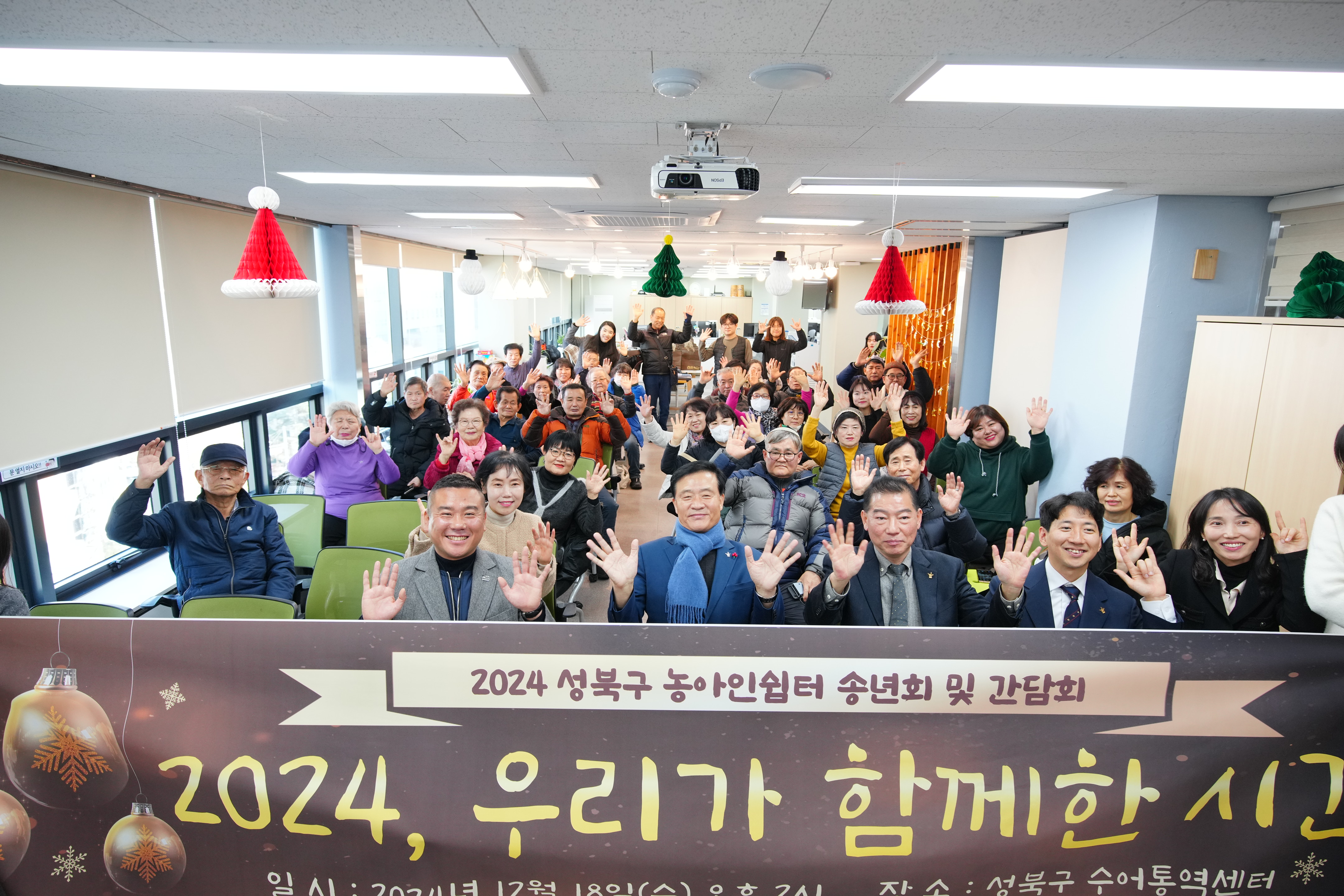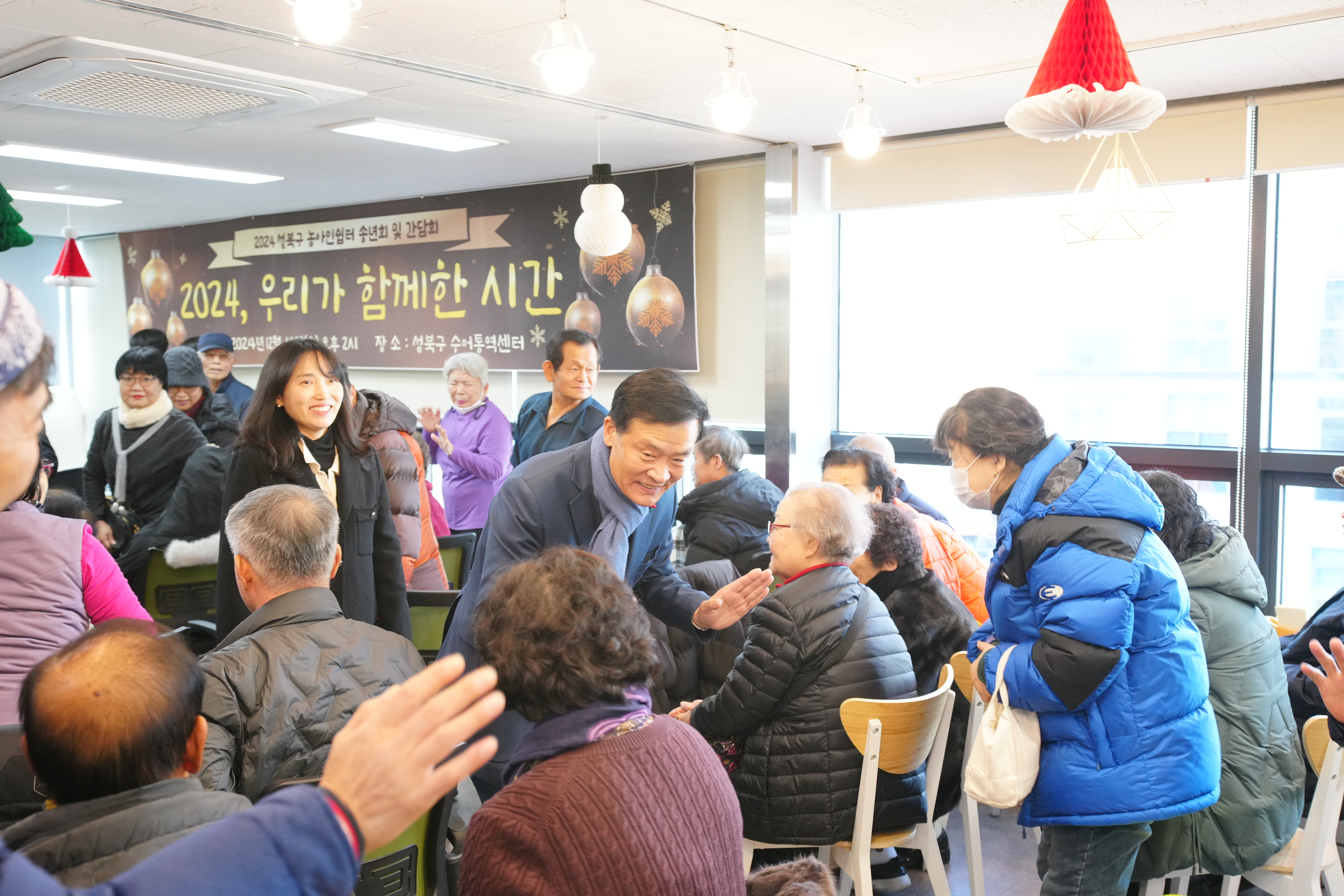 포토, 현장속으로 홈 구청장은 지금 이승로입니다 공약&매니페스토 참여와 소통 구청장은 지금 현장 구청장실 포토, 현장속으로 포토, 현장속으로 영상으로 보는 구정활동 언론이 보는 구정활동 공유하기 블로그 페이스북 닫기 인쇄 복사 성북구 농아인쉼터 송년회 및 간담회 {게시글 제목} - 사진번호, 촬영일, 촬영자, 촬영장소, 출처, 분류, 설명 정보 제공 사진번호 20636 촬영일 2024-12-18 촬영자 홍정모 촬영장소 성북구수어통역센터 출처 홍보전산과 분류 ▶복지교육국>어르신·장애인복지과 설명 성북구 농아인쉼터 송년회 및 간담회 이전으로 다음으로 목록보기 다운로드 이전 다음 닫기 다운로드