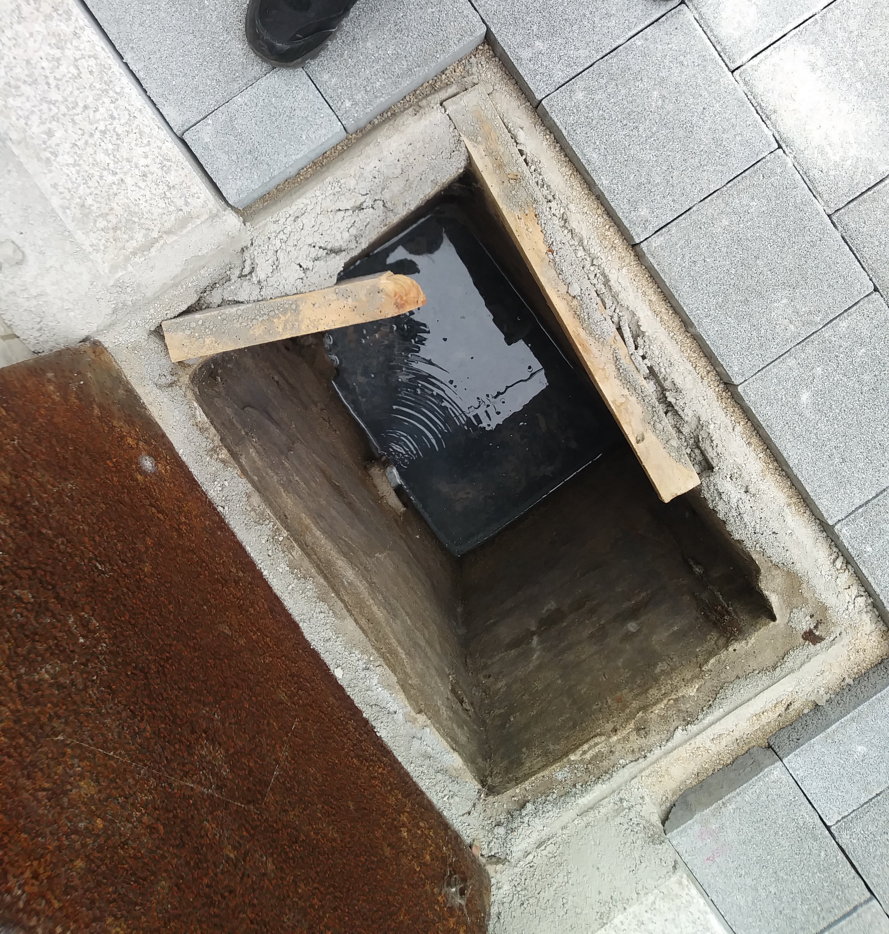 제거된 상태에 맞춰 보도블럭을 설치해서 보도블럭보다 하수시설이 약간 낮아졌고(약 1센치 정도), 보도블럭과 테두리의 간격이 너무 커서 빗물이 고였다가 우리집 하수시설로 들어가게 되었으며, 장마와 같은 집중호우에 문제가 될 것 같습니다. [ 사진-003 ]