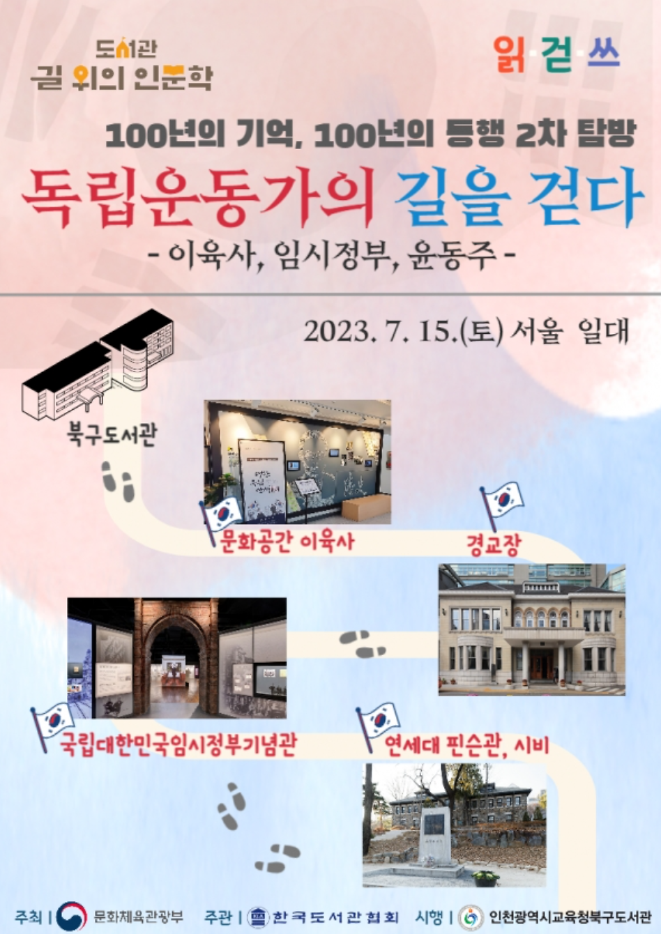 [인천=김정호기자]인천광역시교육청북구도서관은 지역사회와 함께하는 읽·걷·쓰 연계사업으로 도서관 길 위의 인문학 「독립운동가의 길을 걷다」를 운영한다고 3일 밝혔다.