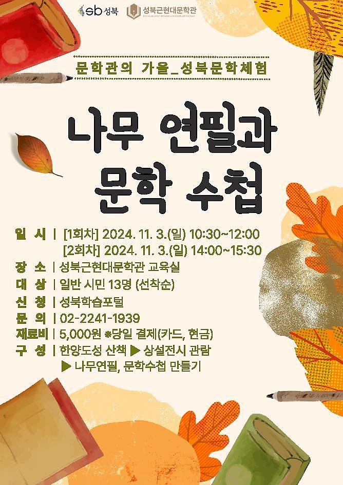 성북근현대문학관 성북문학체험 <나무 연필과 문학 수첩>