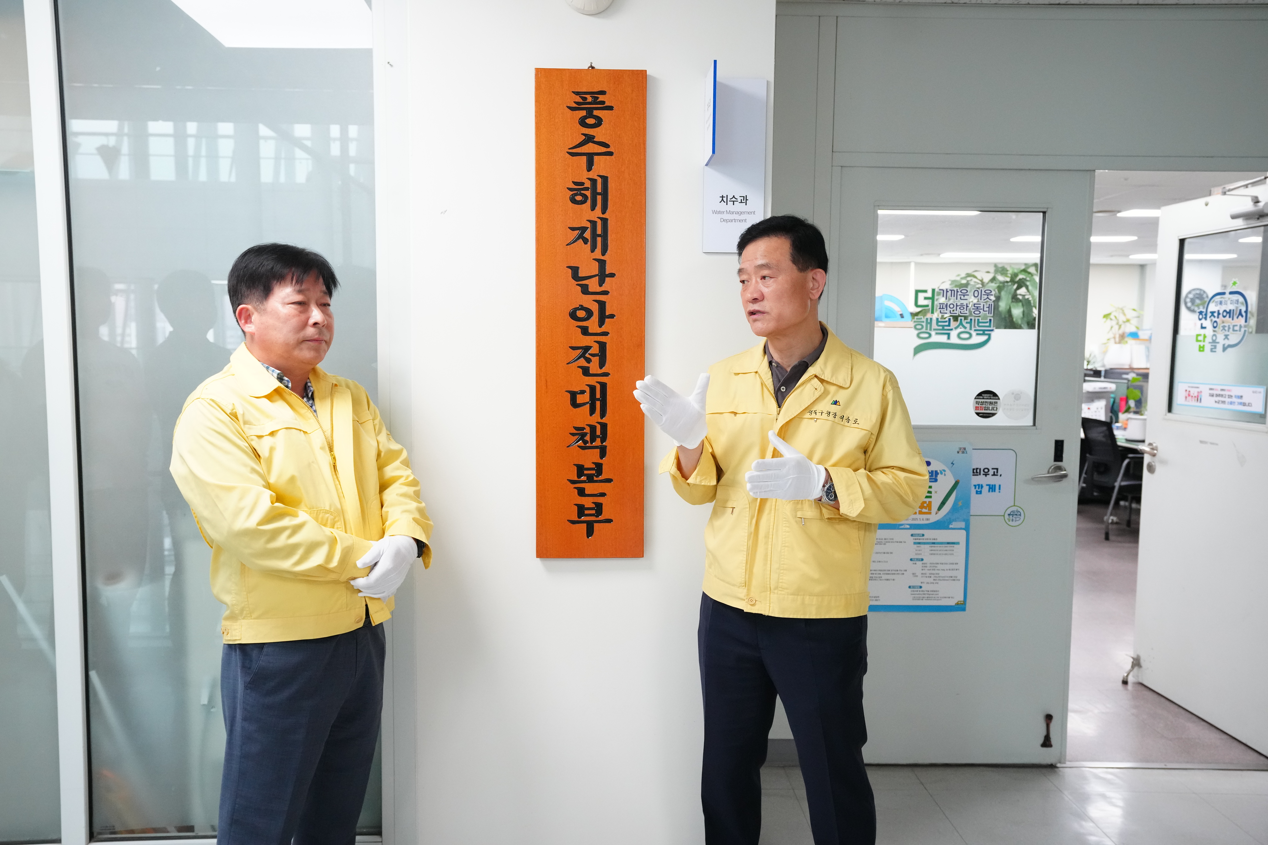 포토, 현장속으로 홈 구청장은 지금 이승로입니다 공약&매니페스토 참여와 소통 구청장은 지금 현장 구청장실 포토, 현장속으로 포토, 현장속으로 영상으로 보는 구정활동 언론이 보는 구정활동 공유하기 블로그 페이스북 닫기 인쇄 복사 풍수해 재난안전대책본부 현판식 {게시글 제목} - 사진번호, 촬영일, 촬영자, 촬영장소, 출처, 분류, 설명 정보 제공 사진번호 21118 촬영일 2025-05-15 촬영자 이준희 촬영장소 성북구청 출처 홍보전산과 분류 ▶건설교통국>치수과 설명 풍수해 재난안전대책본부 현판식 이전으로 다음으로 목록보기 다운로드 이전 다음 닫기 다운로드
