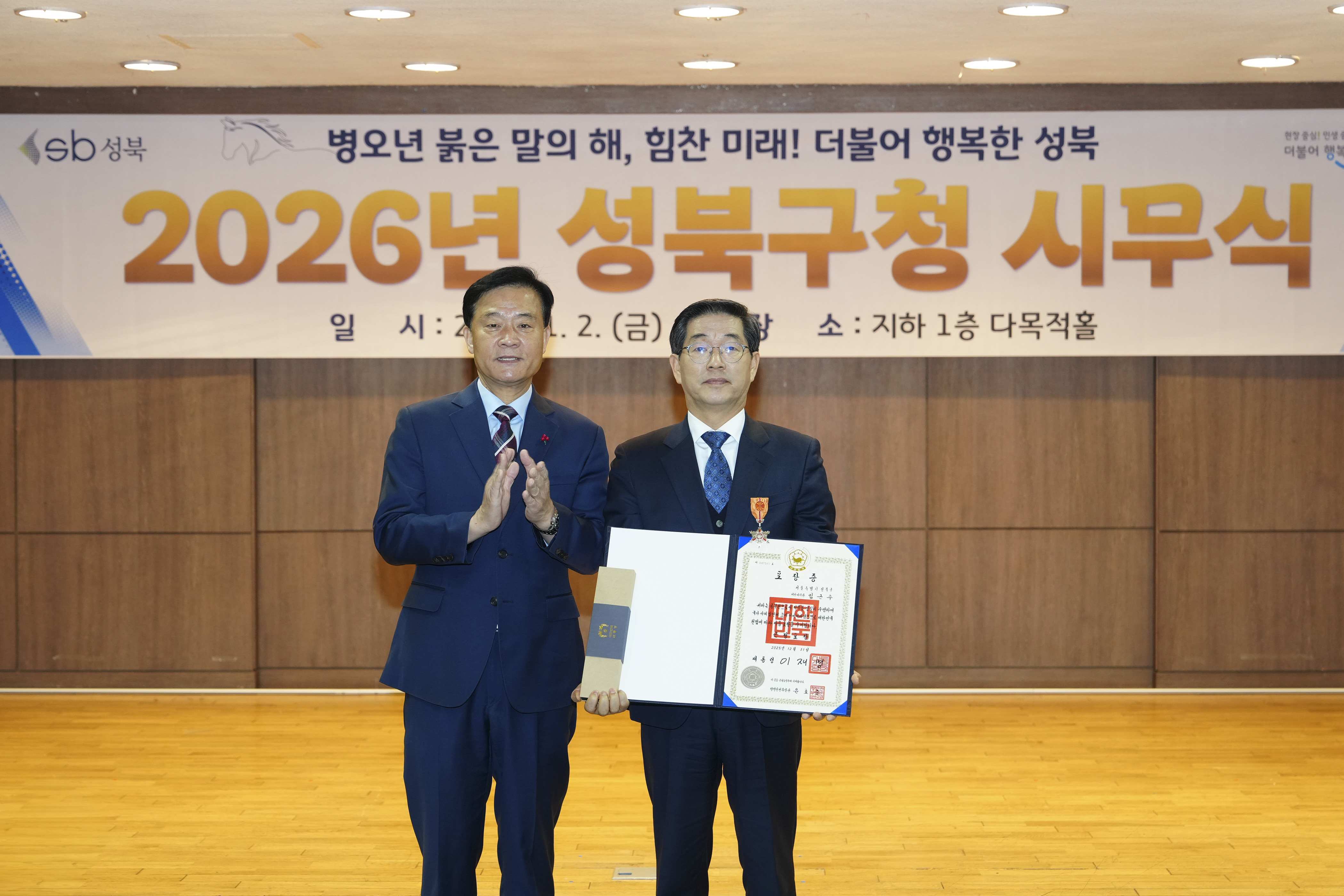 포토, 현장속으로 홈 구청장은 지금 이승로입니다 공약&매니페스토 참여와 소통 구청장은 지금 현장 구청장실 포토, 현장속으로 포토, 현장속으로 영상으로 보는 구정활동 언론이 보는 구정활동 공유하기 블로그 페이스북 닫기 인쇄 복사 2026년 성북구청 시무식 및 신년하례 {게시글 제목} - 사진번호, 촬영일, 촬영자, 촬영장소, 출처, 분류, 설명 정보 제공 사진번호 21465 촬영일 2026-01-02 촬영자 이승훈 촬영장소 출처 홍보전산과 분류 ▶행정문화국>행정지원과 설명 2026년 성북구청 시무식 및 신년하례 이전으로 다음으로 목록보기 다운로드 이전 다음 닫기 다운로드