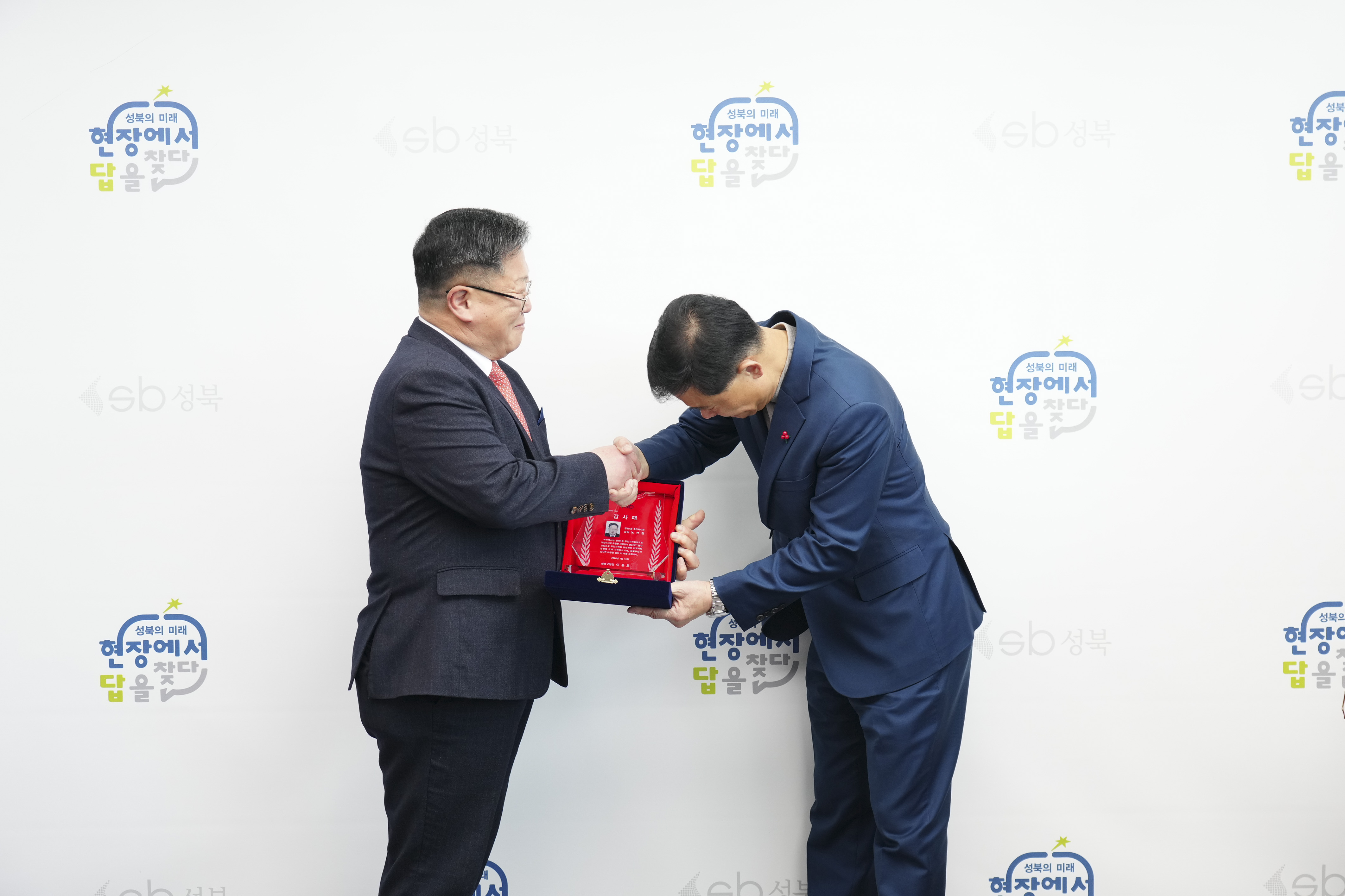 포토, 현장속으로 홈 구청장은 지금 이승로입니다 공약&매니페스토 참여와 소통 구청장은 지금 현장 구청장실 포토, 현장속으로 포토, 현장속으로 영상으로 보는 구정활동 언론이 보는 구정활동 공유하기 블로그 페이스북 닫기 인쇄 복사 2026년 주민자치협의회 유공자 감사패 수여식 {게시글 제목} - 사진번호, 촬영일, 촬영자, 촬영장소, 출처, 분류, 설명 정보 제공 사진번호 21481 촬영일 2026-01-15 촬영자 이승훈 촬영장소 출처 홍보전산과 분류 ▶행정문화국>자치행정과 설명 2026년 주민자치협의회 유공자 감사패 수여식 이전으로 다음으로 목록보기 다운로드 이전 다음 닫기 다운로드