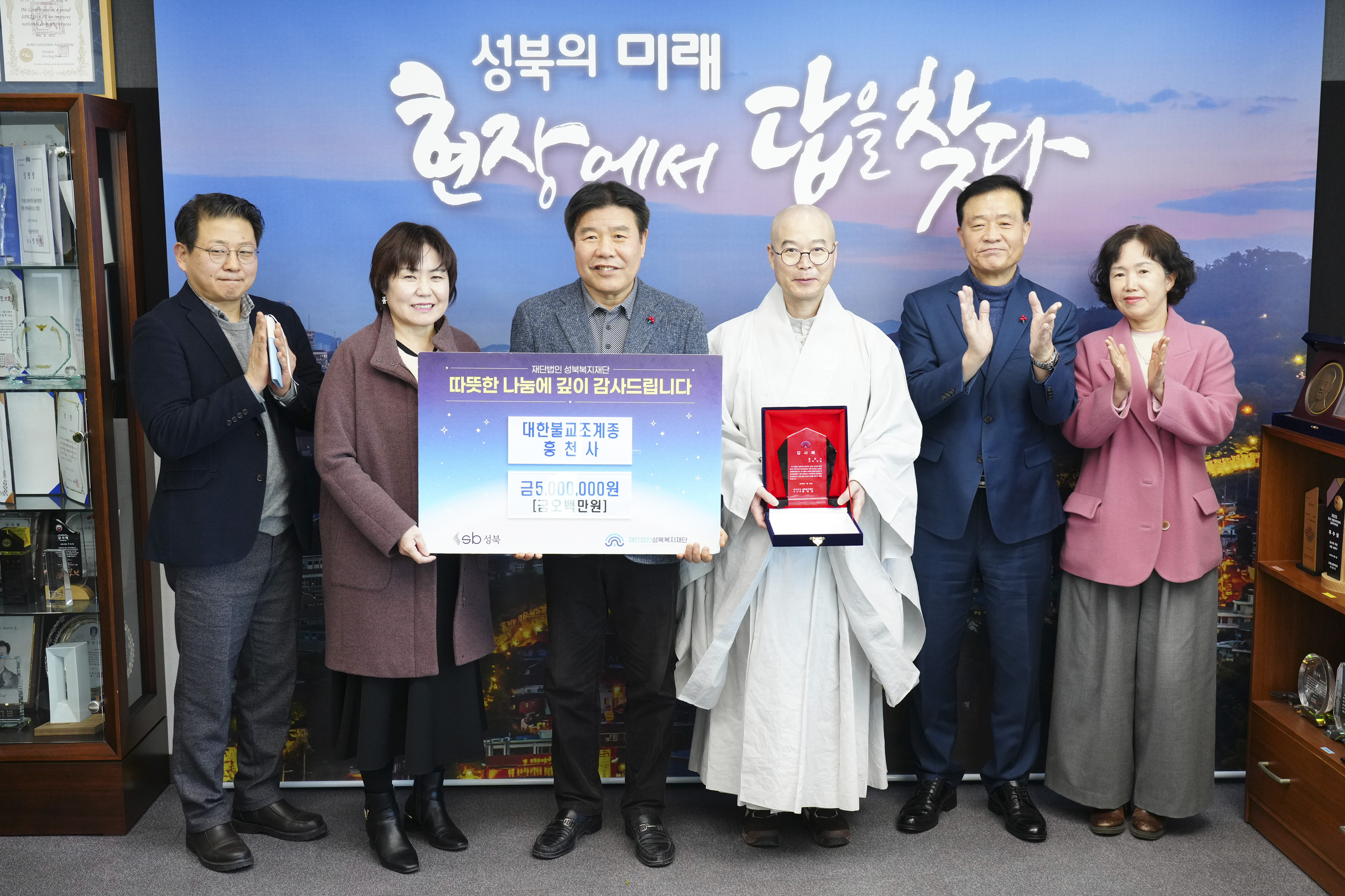 포토, 현장속으로 홈 구청장은 지금 이승로입니다 공약&매니페스토 참여와 소통 구청장은 지금 현장 구청장실 포토, 현장속으로 포토, 현장속으로 영상으로 보는 구정활동 언론이 보는 구정활동 공유하기 블로그 페이스북 닫기 인쇄 복사 성북복지재단(흥천사) 기부금 전달식 {게시글 제목} - 사진번호, 촬영일, 촬영자, 촬영장소, 출처, 분류, 설명 정보 제공 사진번호 21487 촬영일 2026-01-20 촬영자 오은민 촬영장소 성북구청 출처 홍보전산과 분류 ▶돈암2동 설명 성북복지재단(흥천사) 기부금 전달식 이전으로 다음으로 목록보기 다운로드 이전 다음 닫기 다운로드