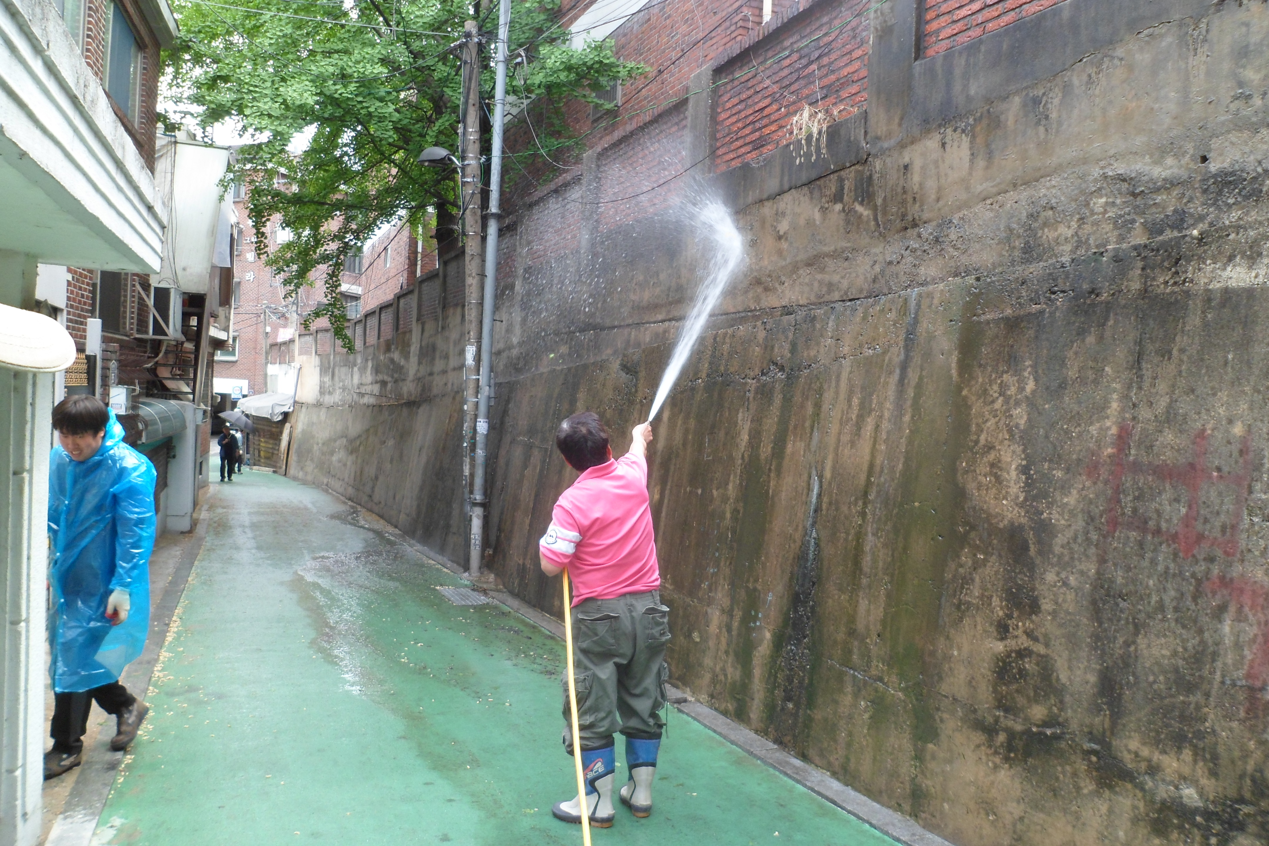- 우리구에서는 민원사항에 대하여 현장확인 후 사진과 같이 청소작업을 완료하였음을 알려드리고, 좀더 깨끗한 주거환경 개선을 위해 동 소규모사업을 통하여 대일연립 옹벽 벽화사업을 적극 검토 중에 있음을 알려드립니다. |