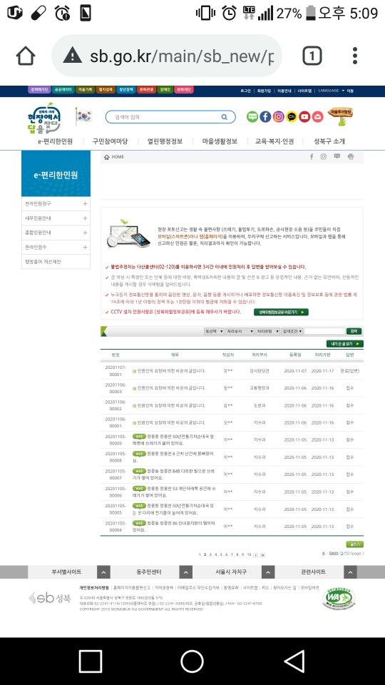 성북구청 홈페이지 이용에 불편을 드린 점 사과 드립니다.